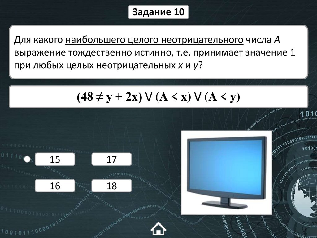 Задание 10Для какого наибольшего целого неотрицательного числа А