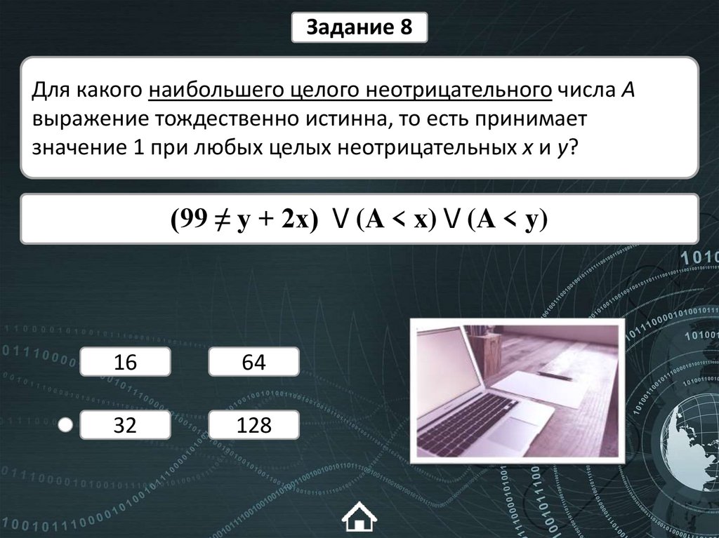 Задание 8Для какого наибольшего целого неотрицательного числа А