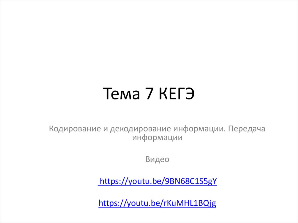 Кодирование и декодирование информации. Передача информации. Тема 7 КЕГЭ (11 класс)