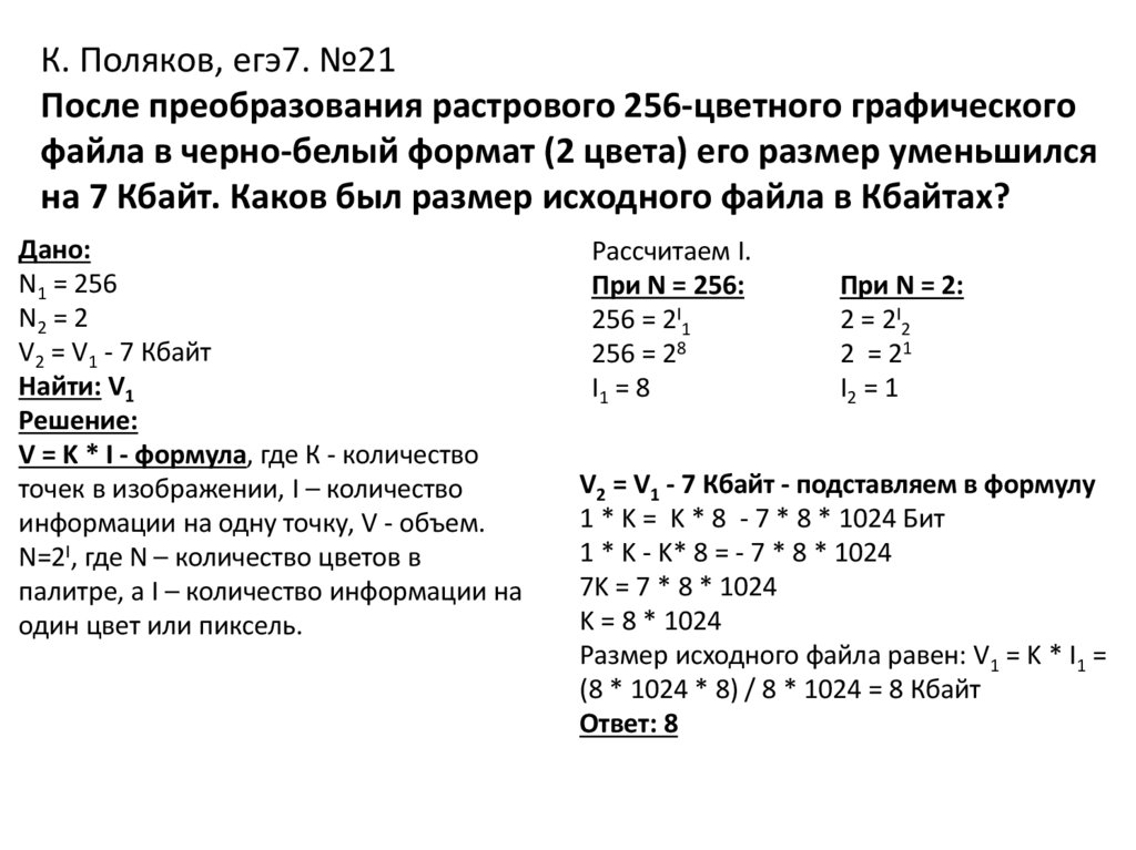 К. Поляков, егэ7. №21После преобразования растрового 256-цветного графического