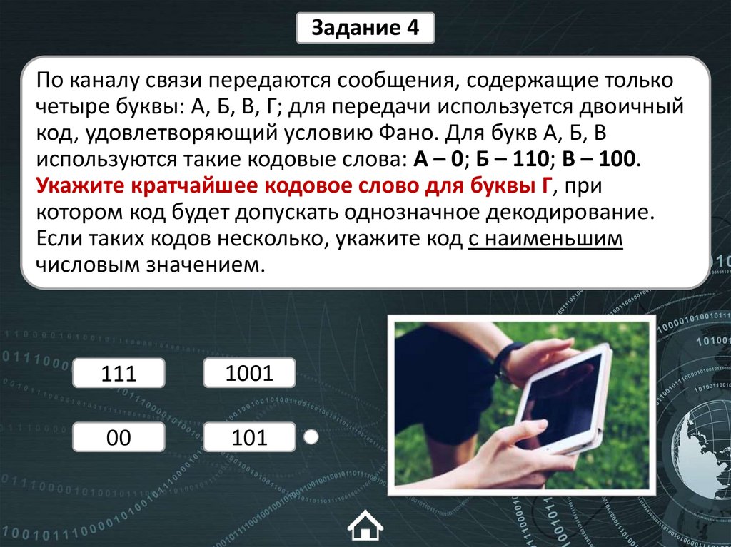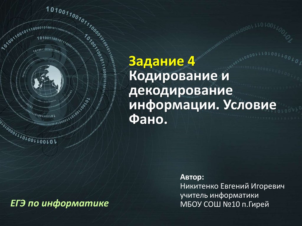 Кодирование и декодирование информации. Условие Фано. ЕГЭ по информатике (задание 4)