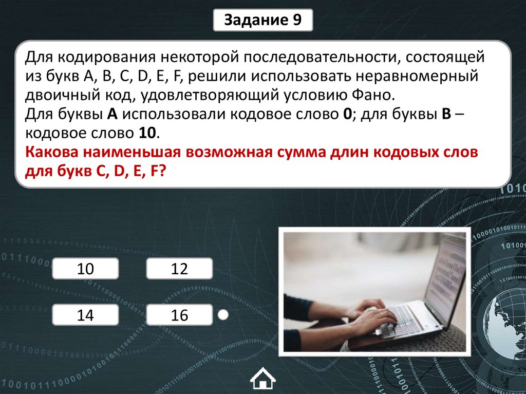 Задание 9Для кодирования некоторой последовательности, состоящей
