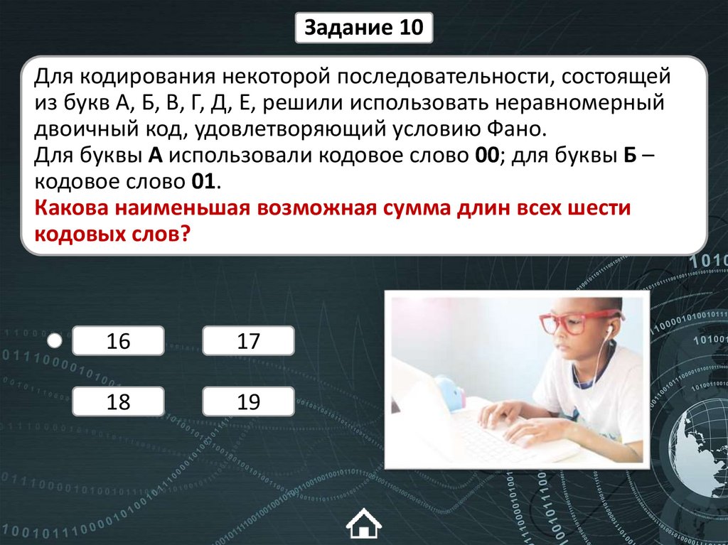 Задание 10Для кодирования некоторой последовательности, состоящей