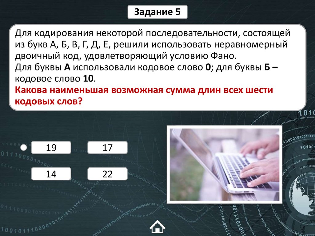 Задание 5Для кодирования некоторой последовательности, состоящей