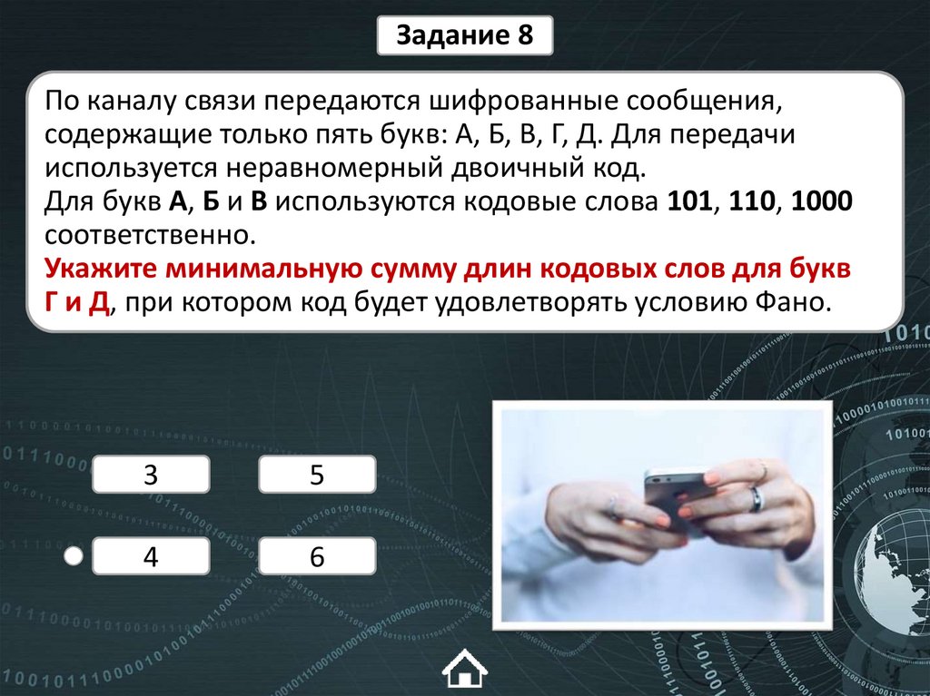 Задание 8По каналу связи передаются шифрованные сообщения,