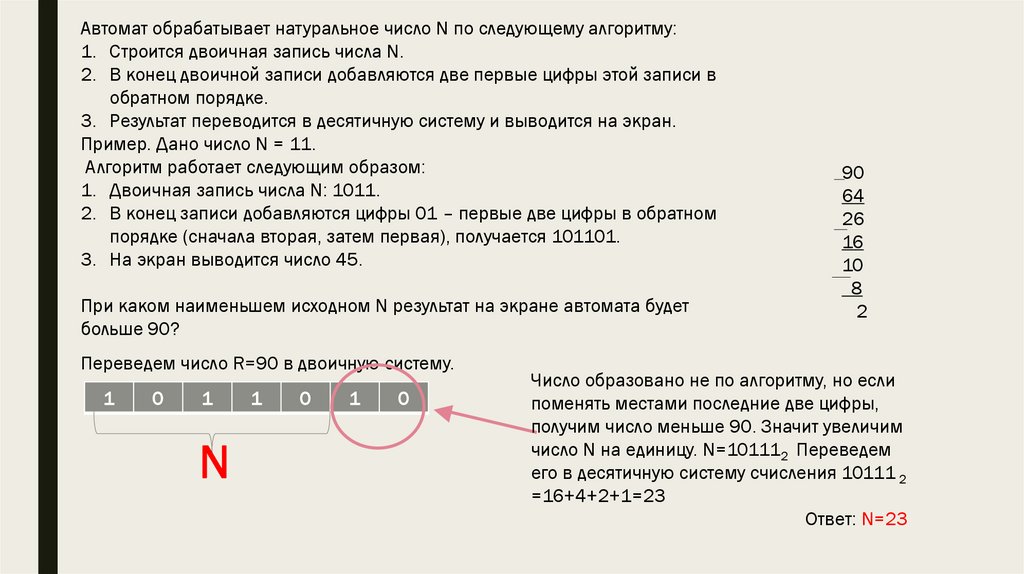 Автомат обрабатывает натуральное число N < 256 по следующемуалгоритму: