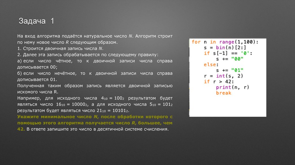 Задача 1На вход алгоритма подаётся натуральное число N. Алгоритм строит