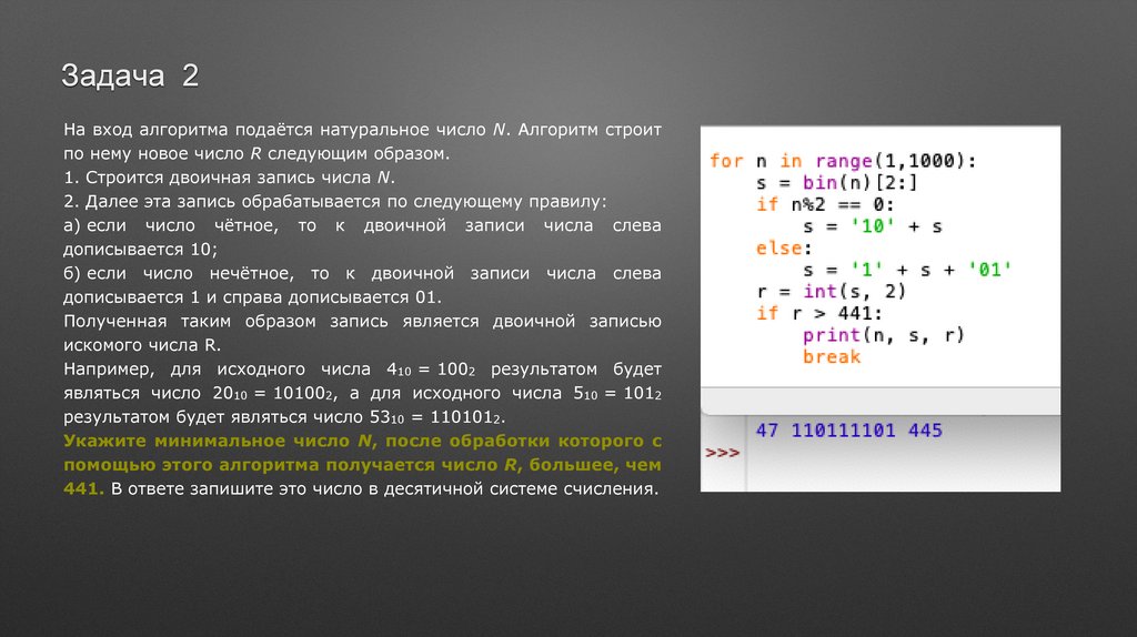 Задача 2На вход алгоритма подаётся натуральное число N. Алгоритм строит