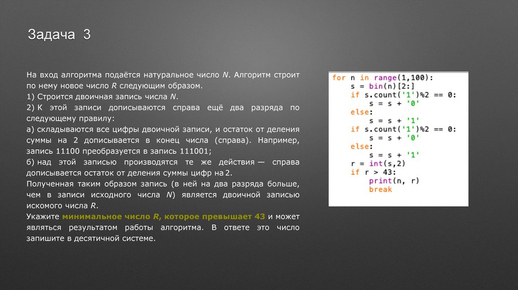 Задача 3На вход алгоритма подаётся натуральное число N. Алгоритм строит