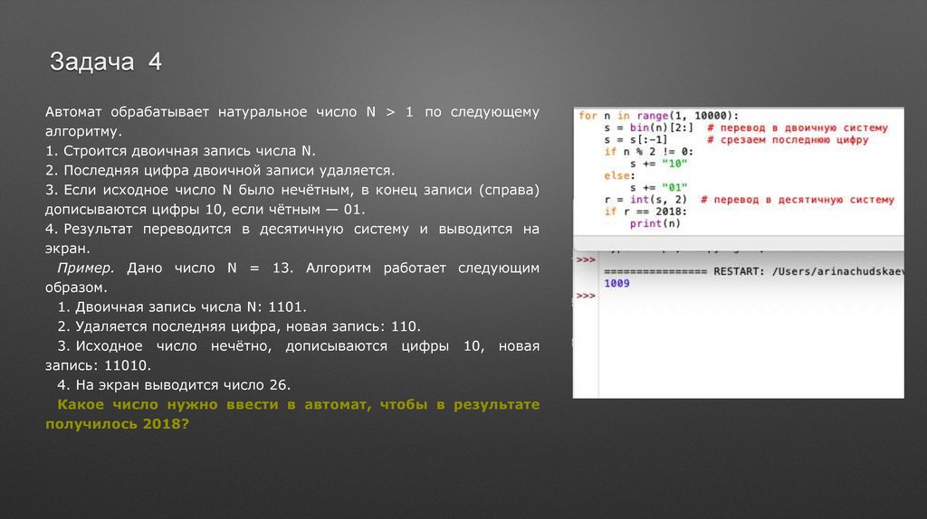 Задача 4Автомат обрабатывает натуральное число N > 1 по следующему