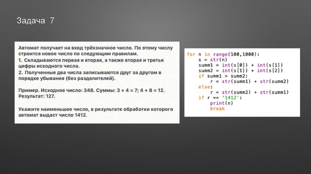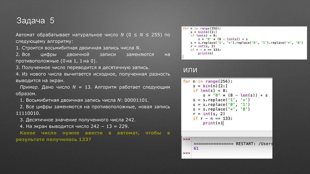 Задача 5Автомат обрабатывает натуральное число N (0 ≤ N ≤ 255) по