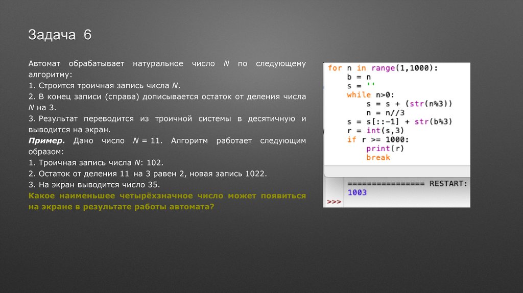 Задача 6Автомат обрабатывает натуральное число N по следующему