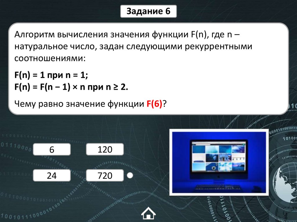 Задание 6Алгоритм вычисления значения функции F(n), где n –