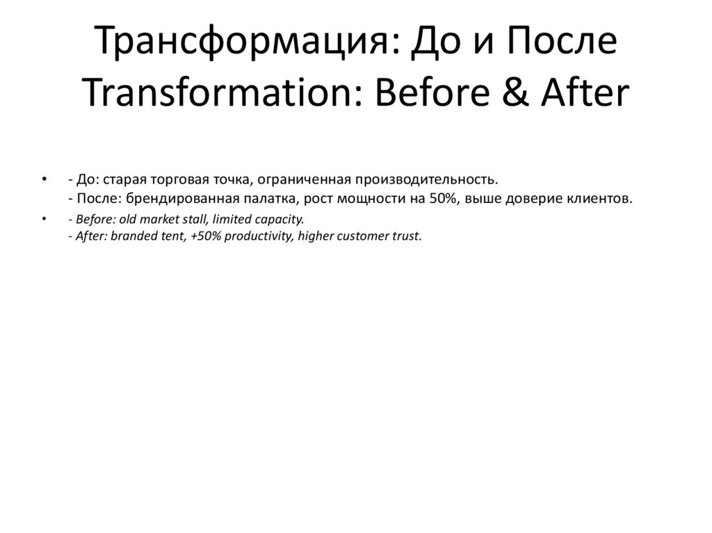 - После: брендированная палатка, рост мощности на 50%, выше доверие клиентов.