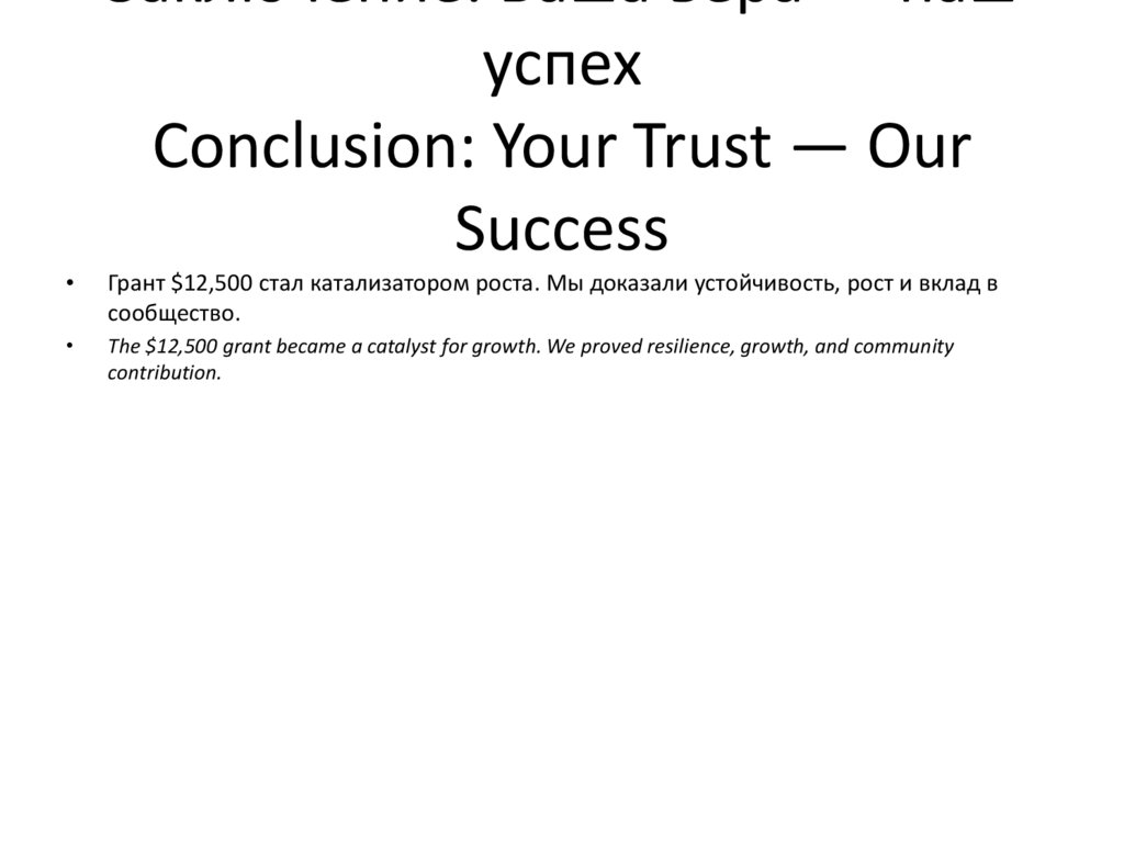 Грант $12,500 стал катализатором роста. Мы доказали устойчивость, рост и вклад в