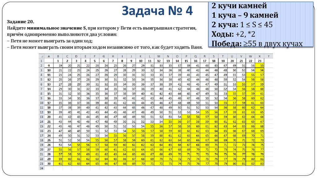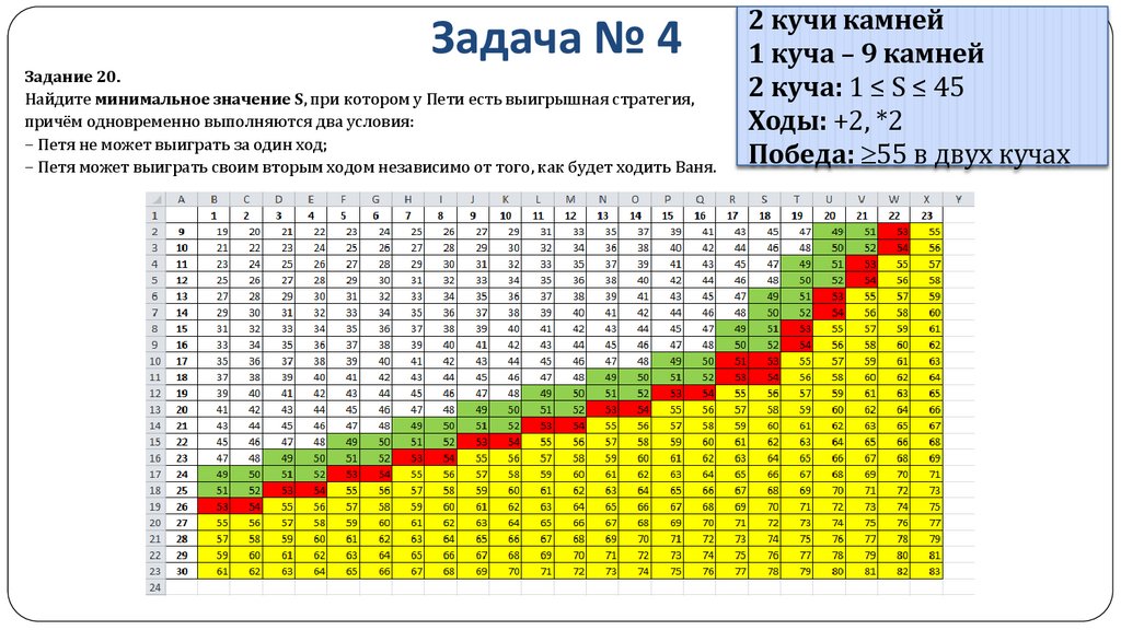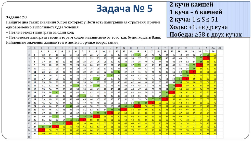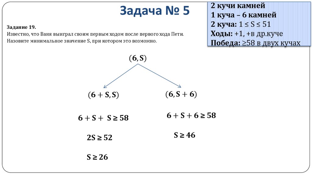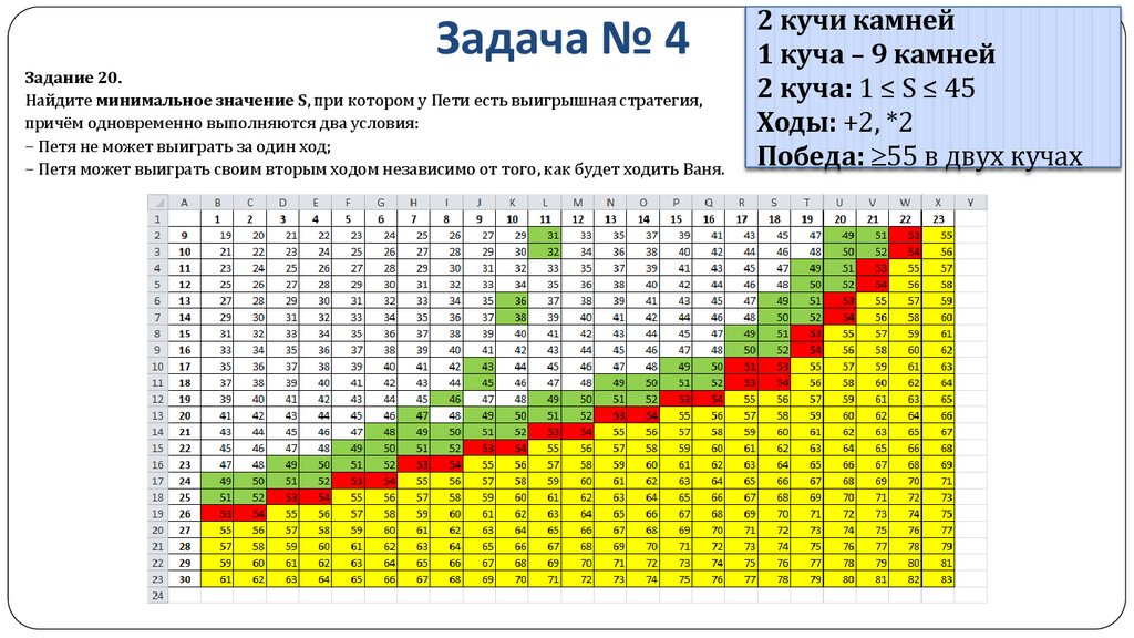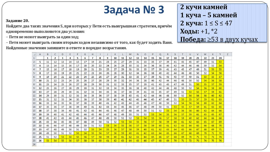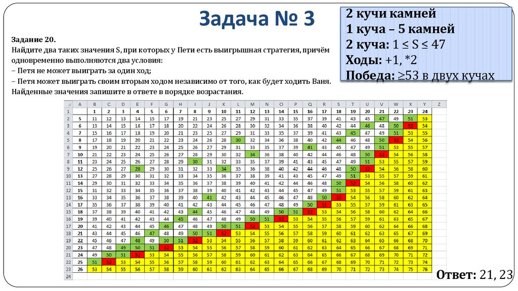 ходом, в зависимости от хода Пети (Петя проигрывает) – задание № 21