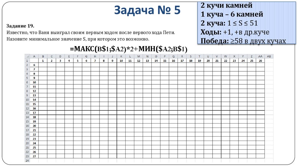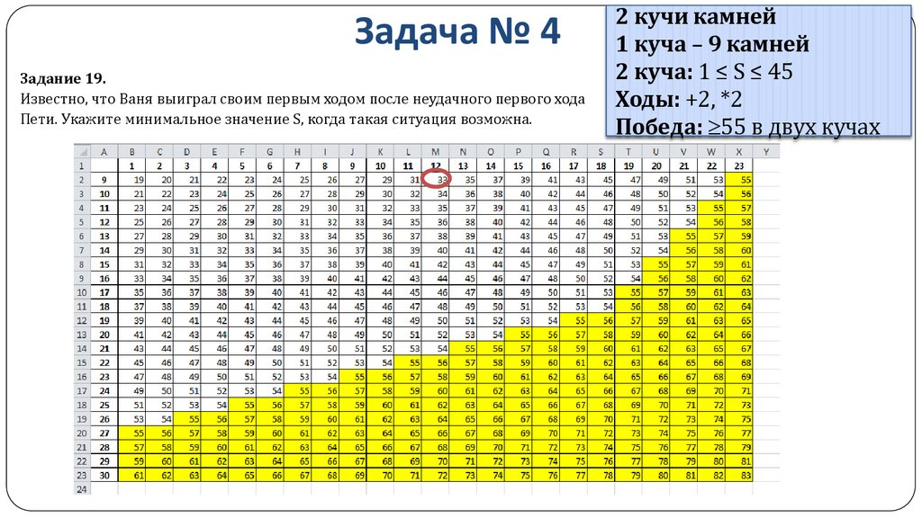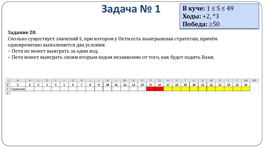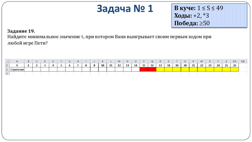 Задача № 1В куче: 1 ≤ S ≤ 49