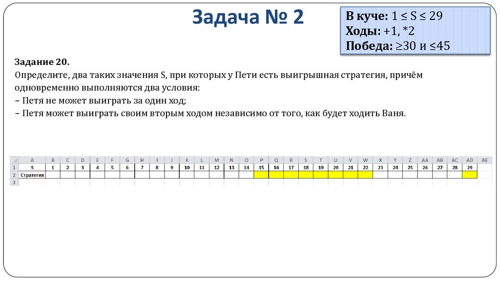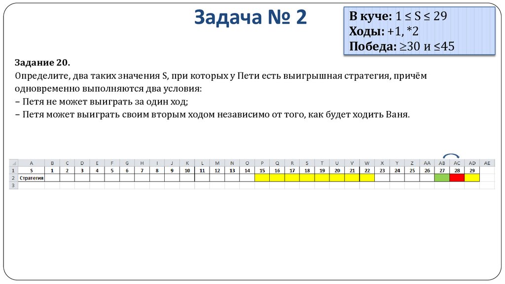 Алгоритм решения1. Найти все значения, при которых Петя выиграет своим первым ходом