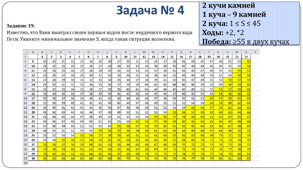 Задача № 1В куче: 1 ≤ S ≤ 49