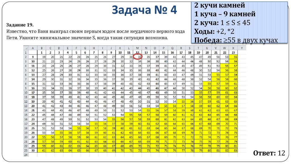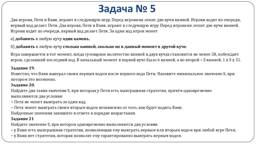 ходом, в зависимости от хода Пети (Петя проигрывает) – задание № 21