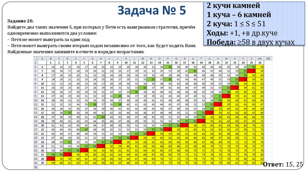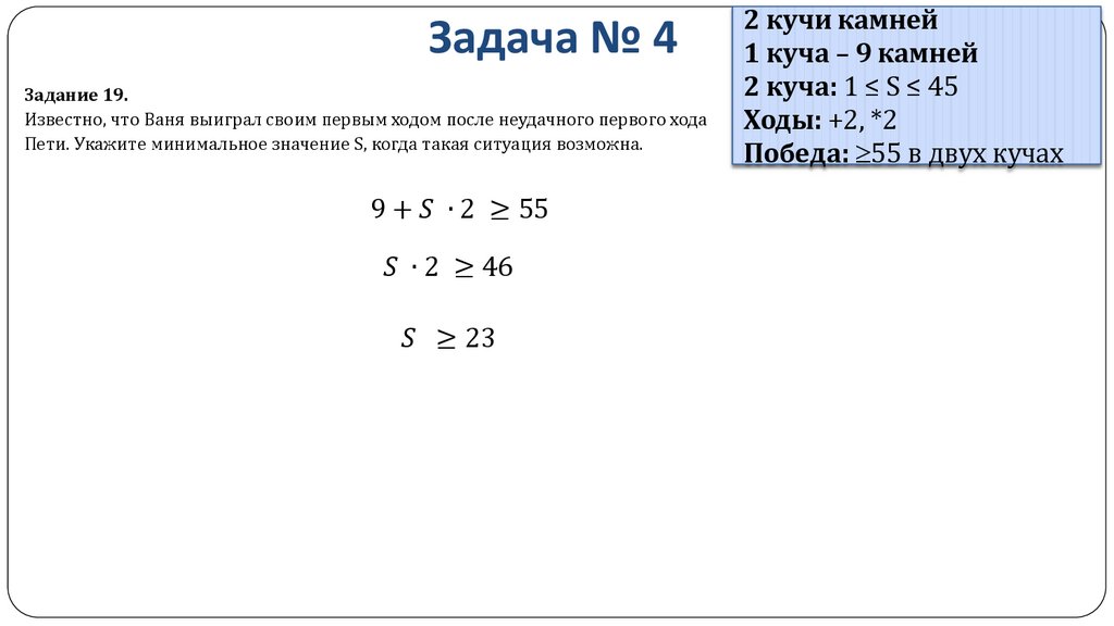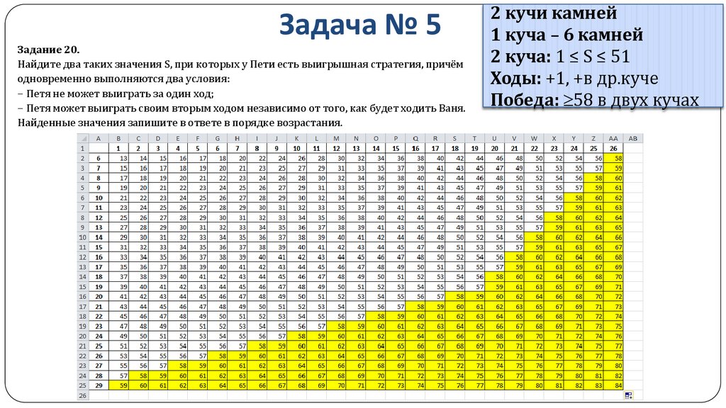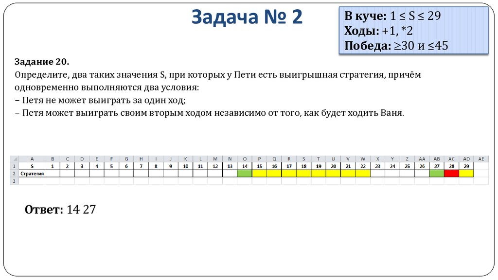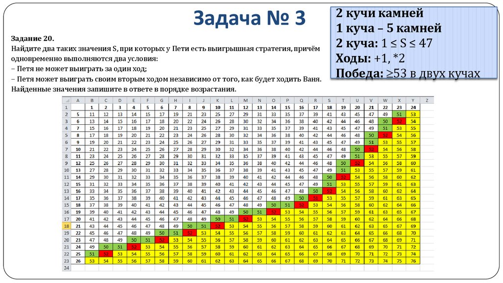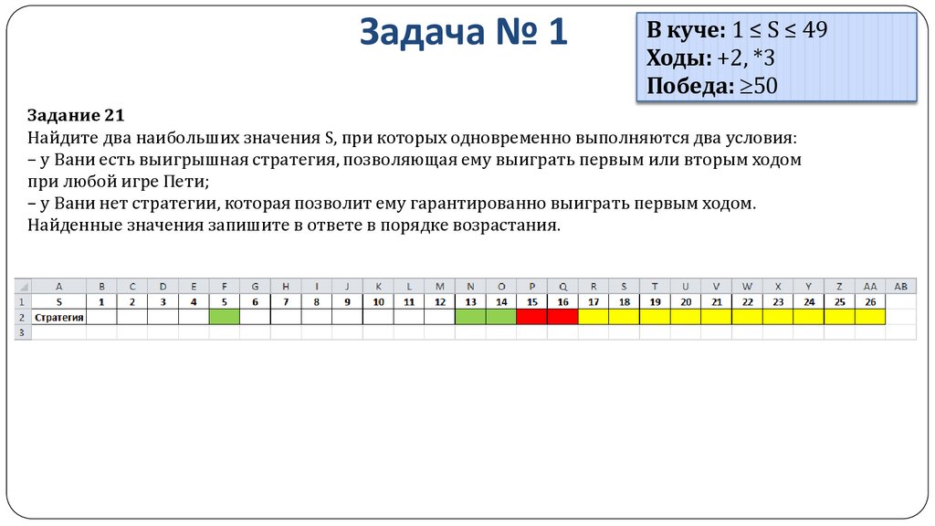 ходом, в зависимости от хода Пети (Петя проигрывает) – задание № 21