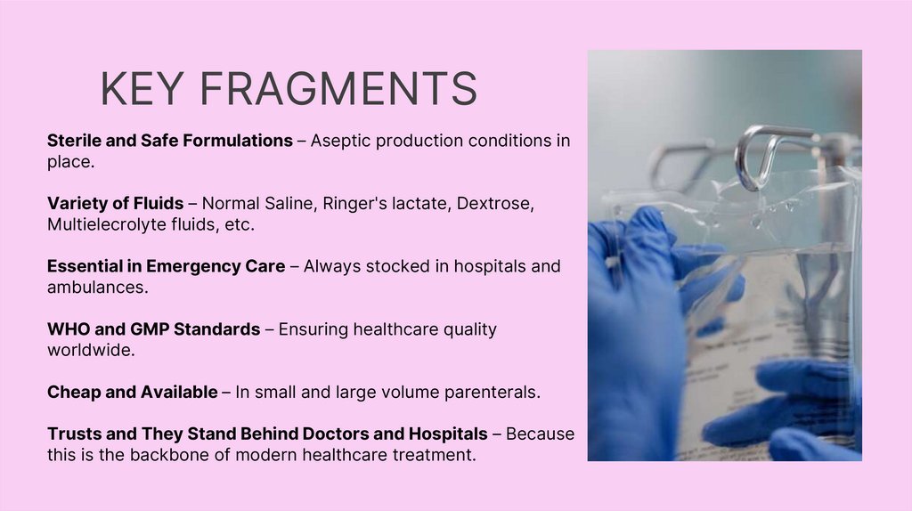 KEY FRAGMENTSSterile and Safe Formulations – Aseptic production conditions in