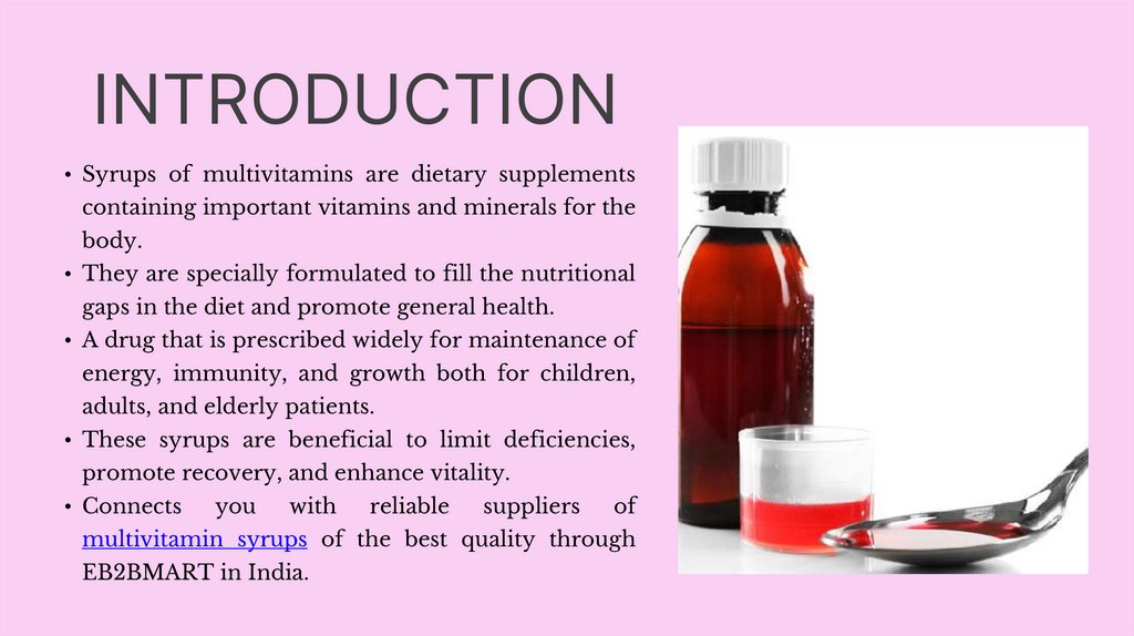 INTRODUCTION• Syrups of multivitamins are dietary supplements