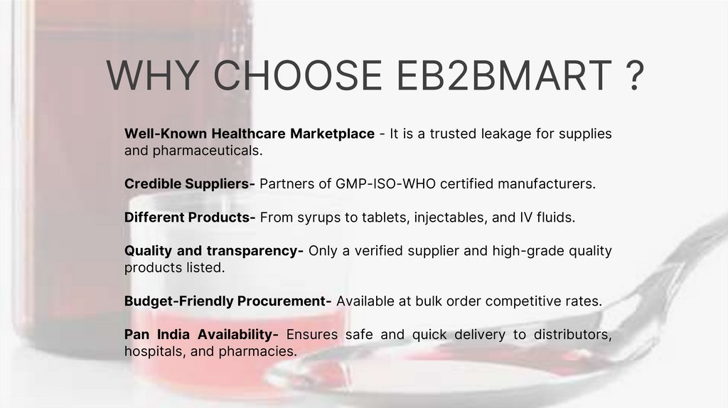 WHY CHOOSE EB2BMART ?Well-Known Healthcare Marketplace - It is a trusted leakage for supplies