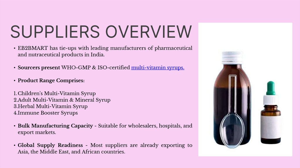 • Sourcers present WHO-GMP & ISO-certified multi-vitamin syrups.