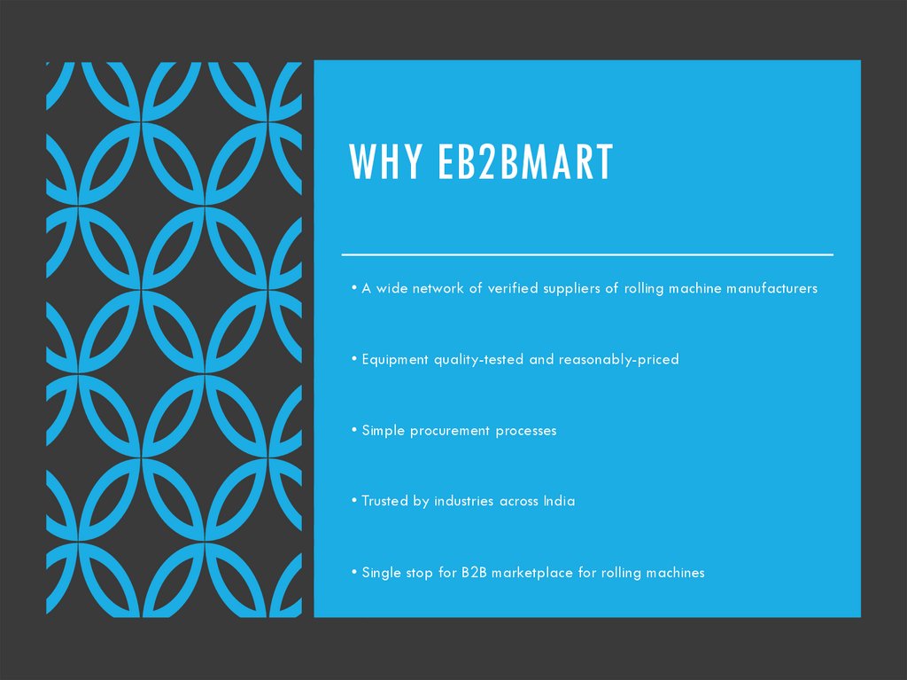 WHY EB2BMART• A wide network of verified suppliers of rolling machine manufacturers