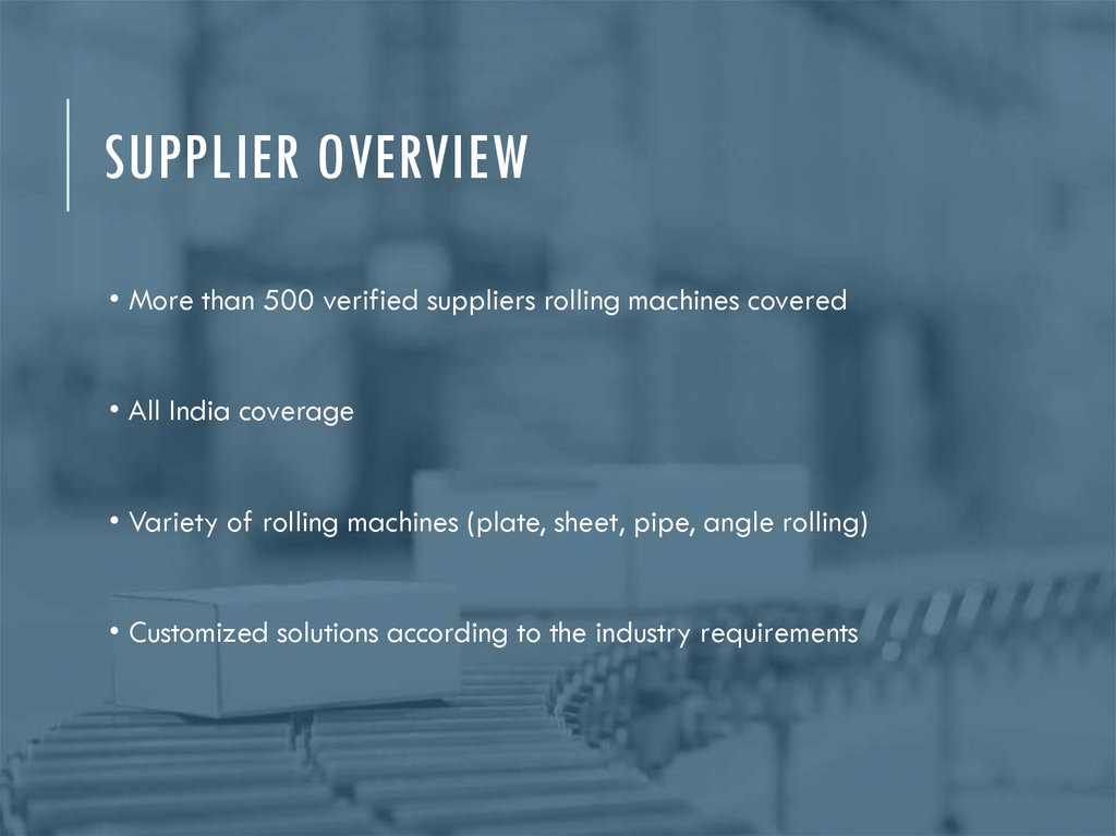 SUPPLIER OVERVIEW• More than 500 verified suppliers rolling machines covered