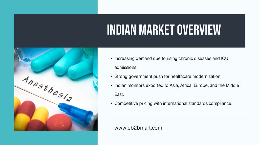 INDIAN MARKET OVERVIEW• Increasing demand due to rising chronic diseases and ICU