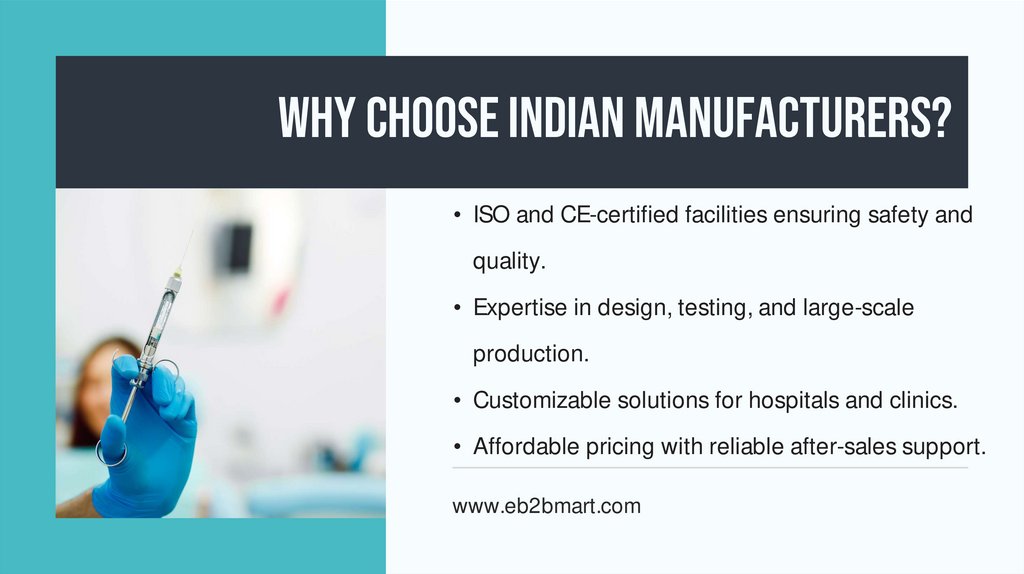 WHY CHOOSE INDIAN MANUFACTURERS?• ISO and CE-certified facilities ensuring safety and