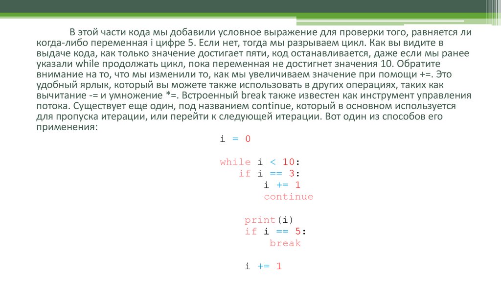 мы разрываем цикл. Существует еще одна тема, касающаяся циклов, которую