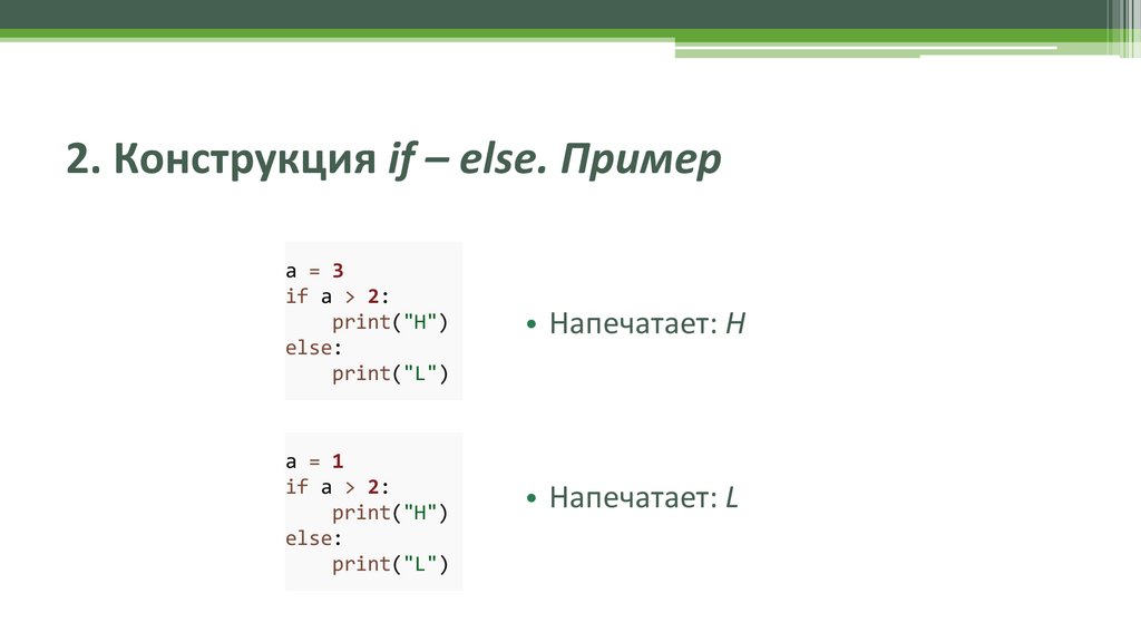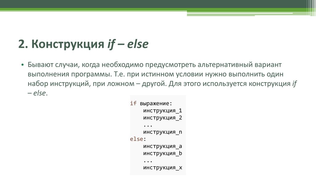 2. Конструкция if – else• Бывают случаи, когда необходимо предусмотреть альтернативный вариант