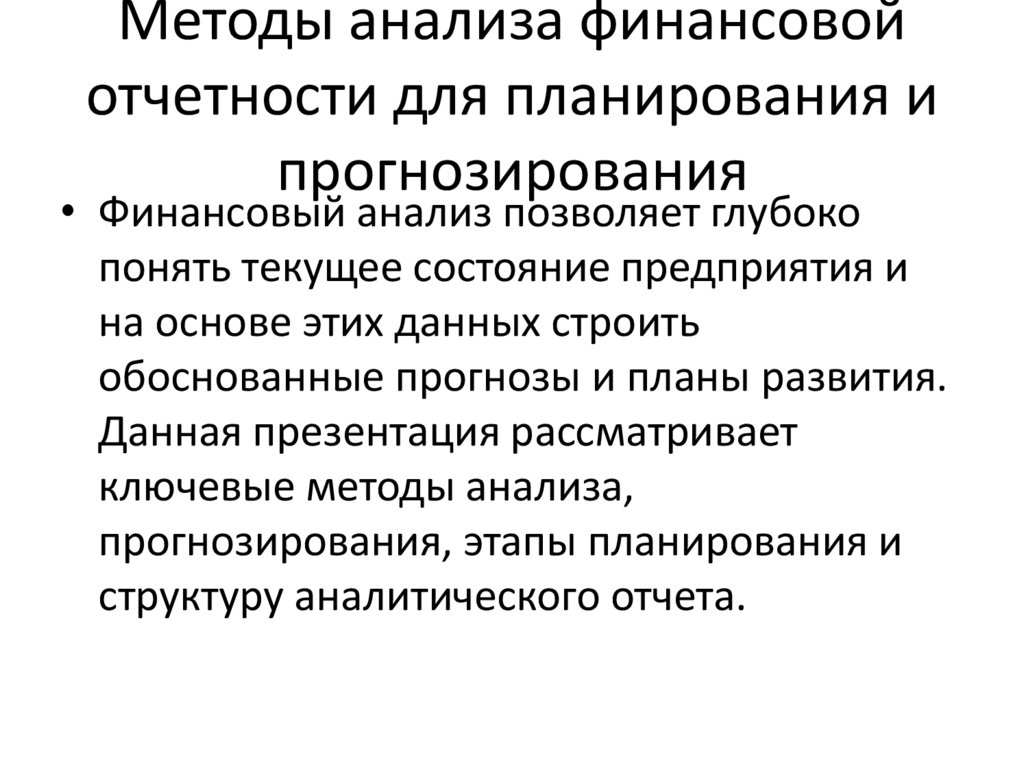 Методы анализа финансовой отчетности для планирования и прогнозирования
