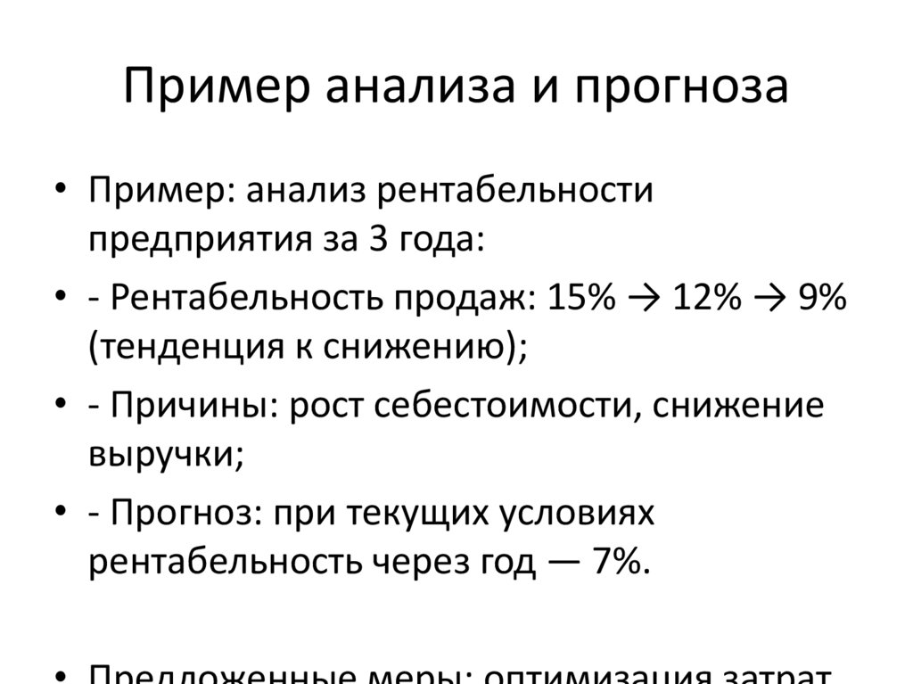 Пример анализа и прогноза• Пример: анализ рентабельности
