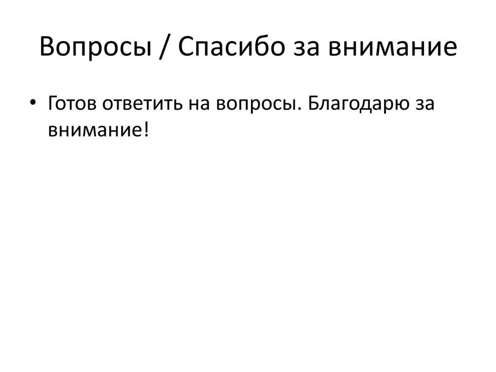 Вопросы / Спасибо за внимание• Готов ответить на вопросы. Благодарю за