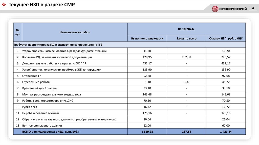 Текущее НЗП в разрезе СМР№