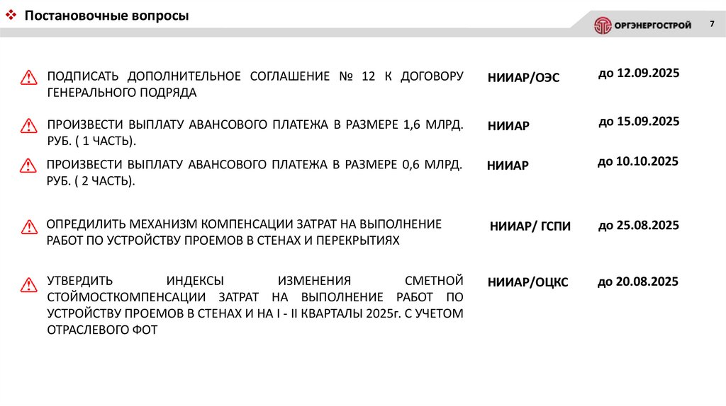 Оргэнергострой. Статус выполнения производственной программы на 2025
