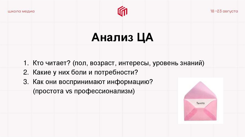 Понимание своей ЦА помогает вам создавать релевантный контент.Формат контента