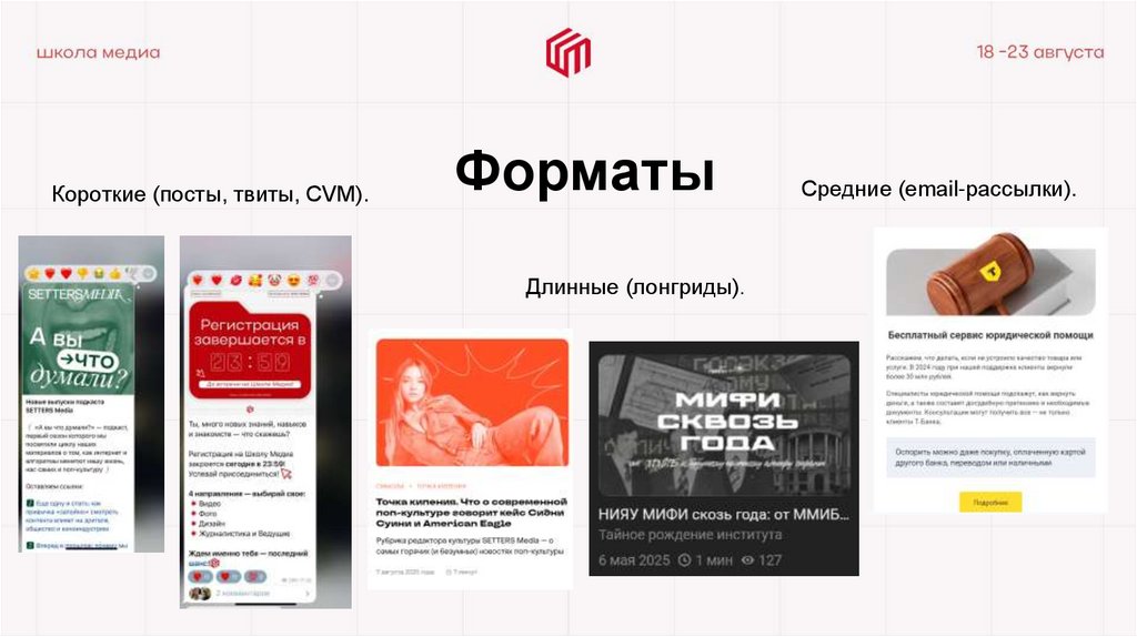 Короткие (посты, твиты, CVM).Форматы