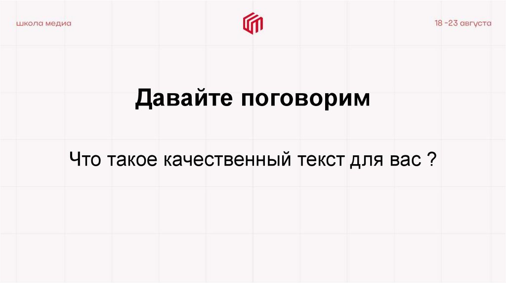 Давайте поговоримЧто такое качественный текст для вас ?