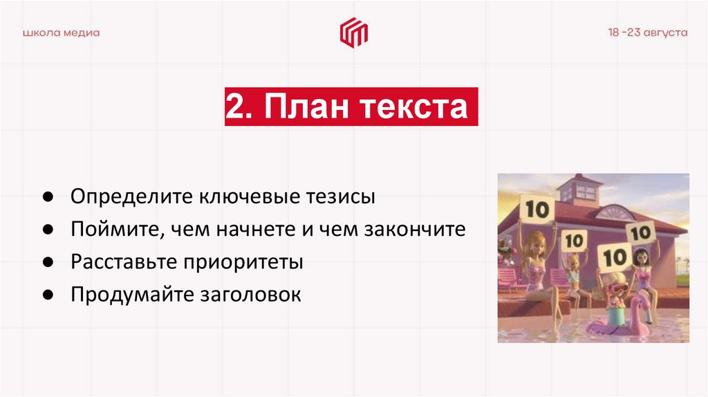 2. План текста● Определите ключевые тезисы