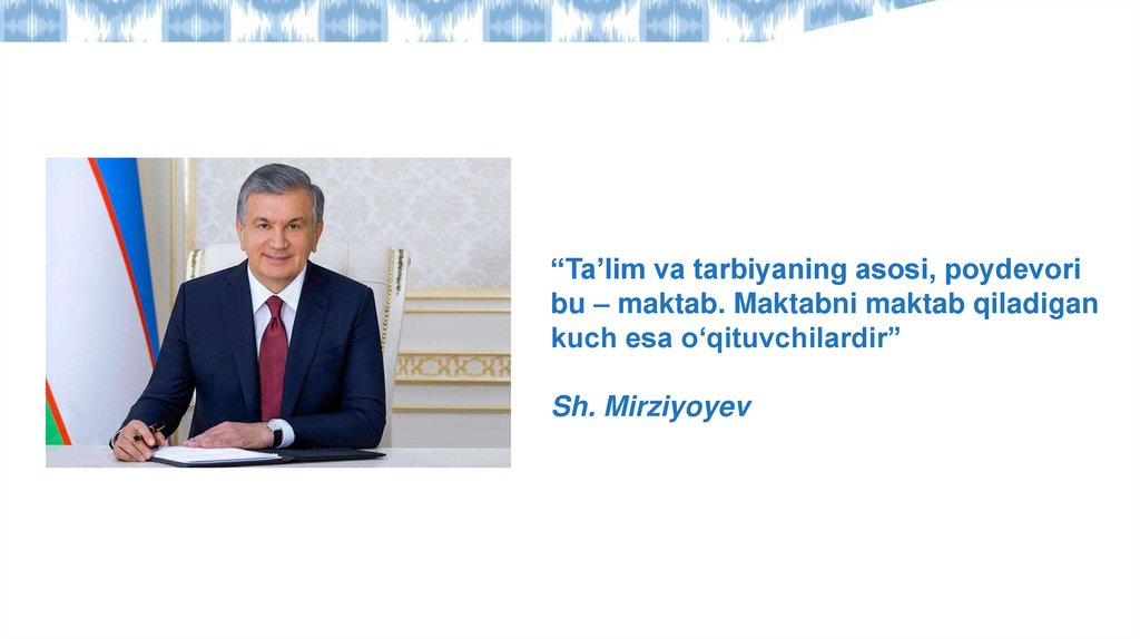 “Ta’lim va tarbiyaning asosi, poydevoribu – maktab. Maktabni maktab qiladigan