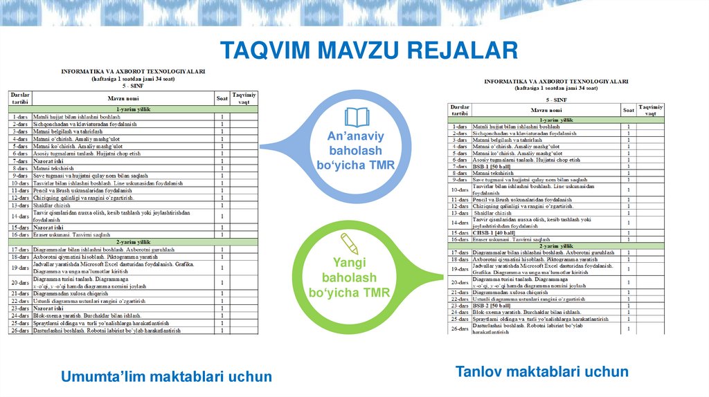 Umumiy o‘rta ta’lim maktablari uchunTAQVIM-MAVZU REJALAR