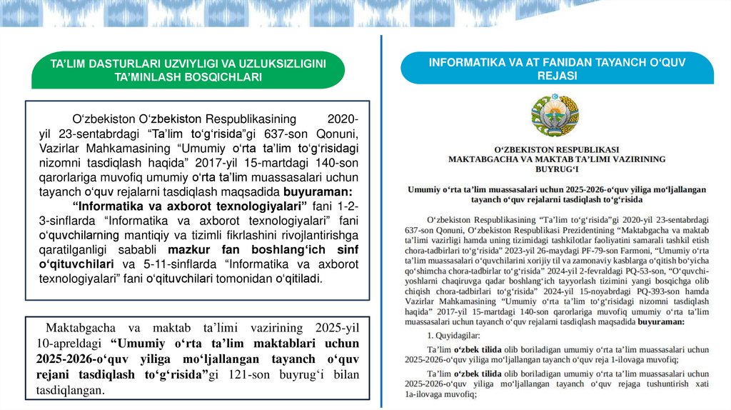 “Informatika va axborot texnologiyalari” fani 1-23-sinflarda “Informatika va axborot texnologiyalari” fani