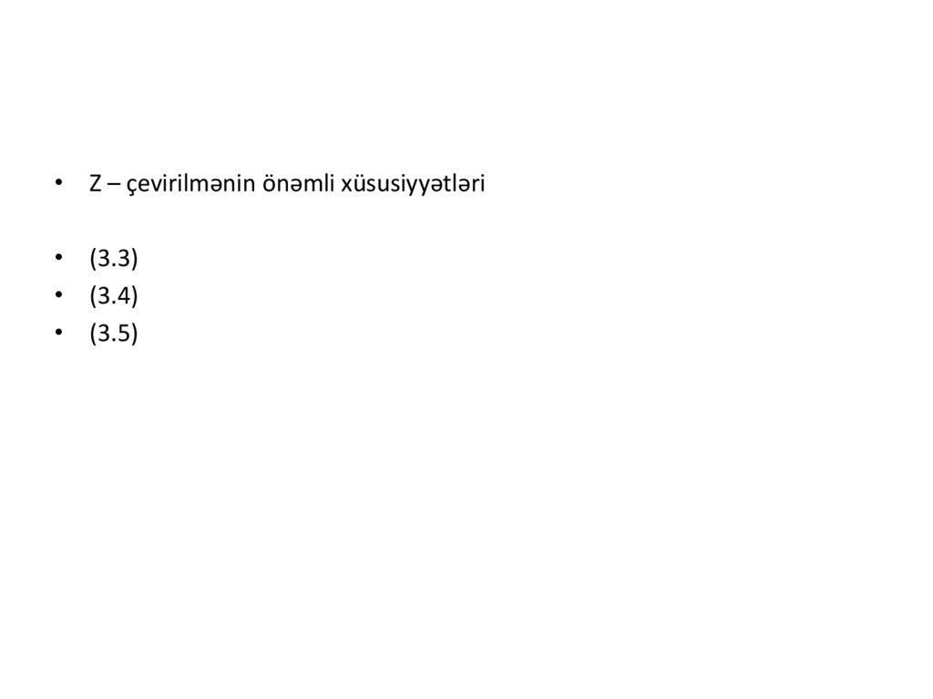 • Z – çevirilmənin önəmli xüsusiyyətləri• (3.3)
