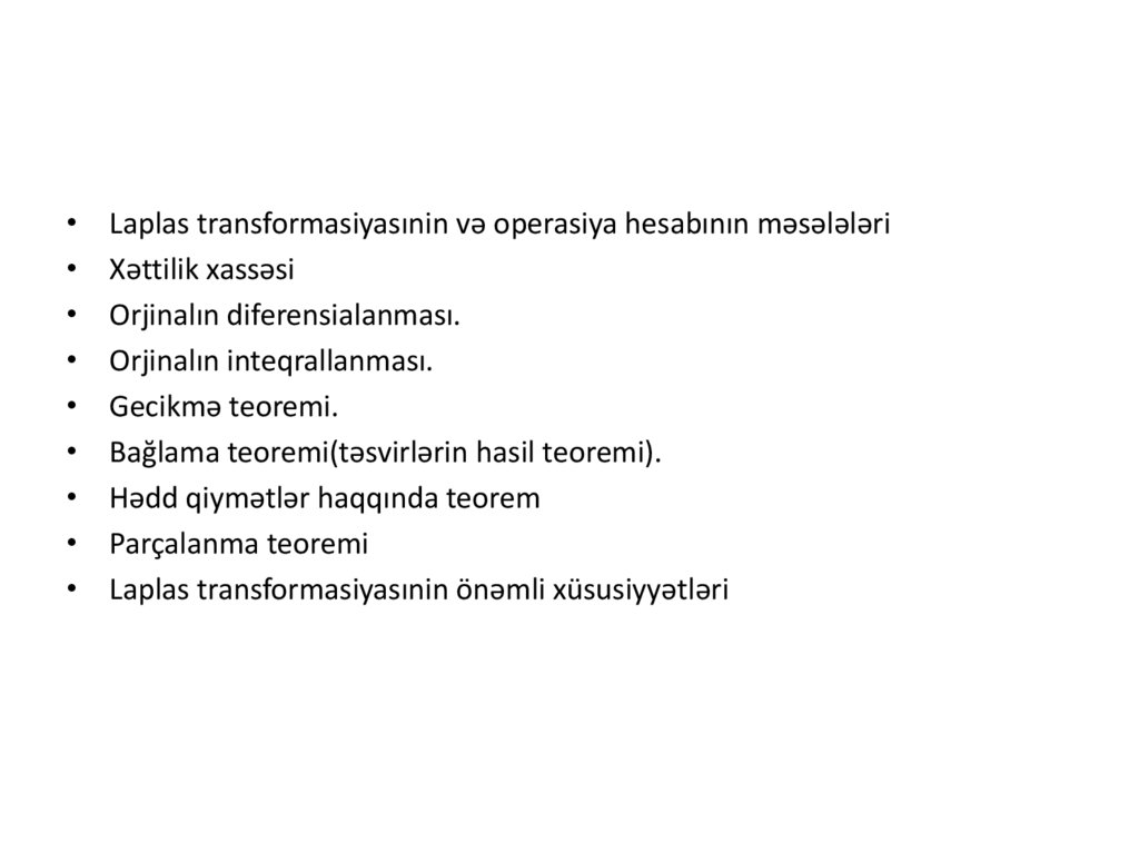 • Laplas transformasiyasınin önəmli xüsusiyyətləri