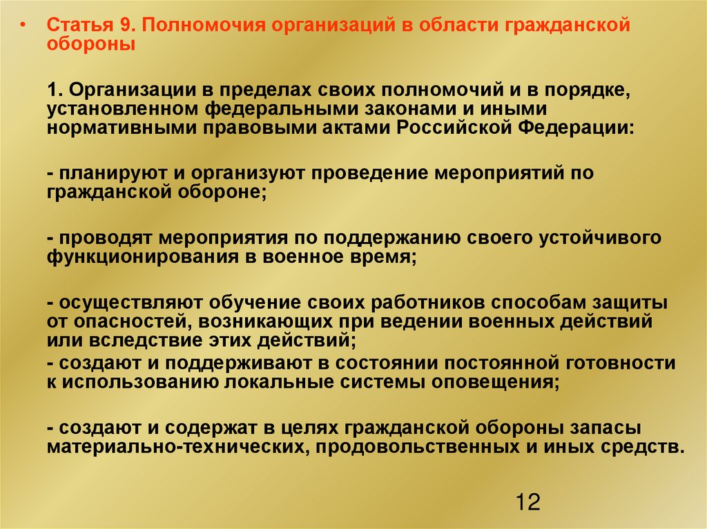 Федеральный закон “О гражданской обороне” от 12.02.98г. № 28.